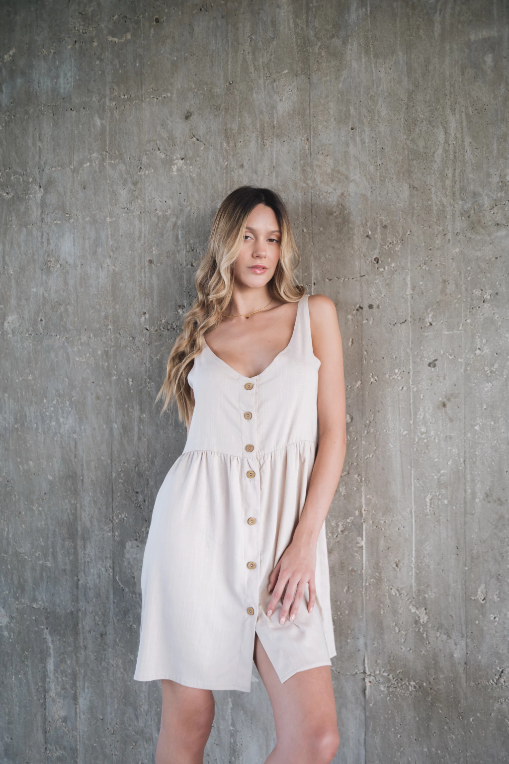 El Vestido justo que necesitas! El largo adecuado para estar fresca y cómoda. El detalle de sus botones, lo hace único.